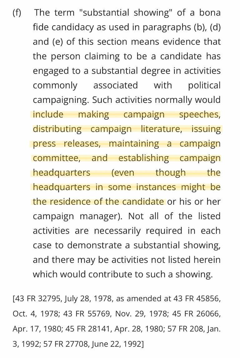 Only requirement is “evidence that the person claiming to be a candidate has engaged to a substantial degree in activities commonly associated with political campaigning”.