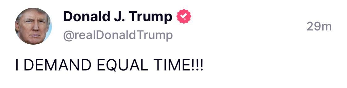 That sounds comical when you first hear it, right? There’s no way the Fake Corporate News Media would **ever** grant Donald J. Trump equal time, right?