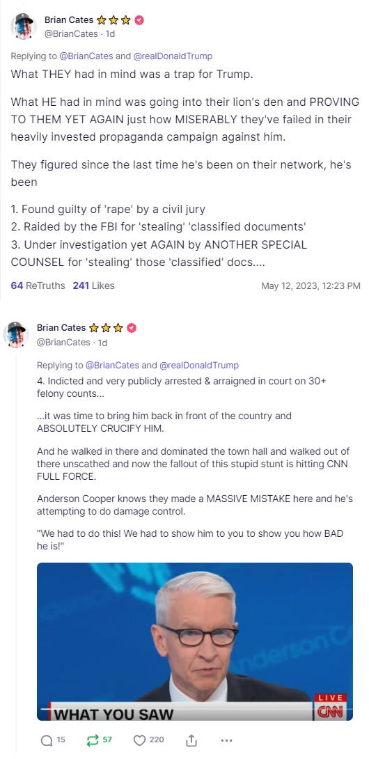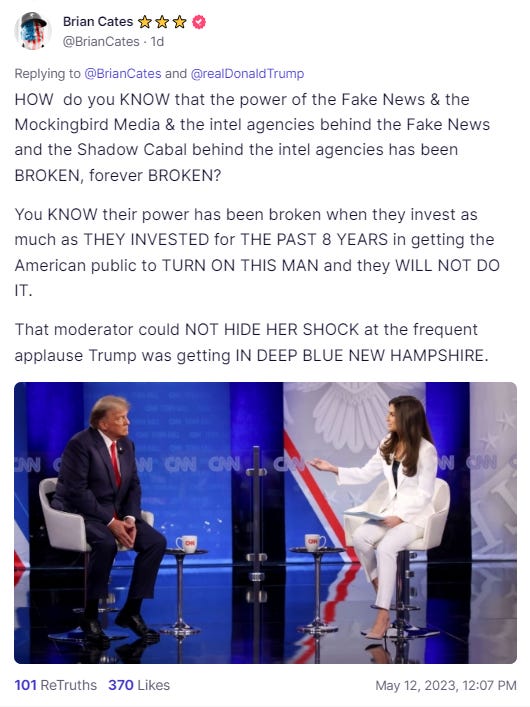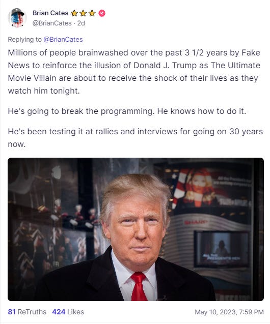 Here’s what I said on my Truth Social account just minutes before the town hall got underway, after I saw many social media commentators saying Trump was making a mistake and this might end up damaging him: