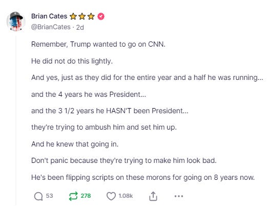 I’m sure the CNN suits at the HQ in Atlanta had an idea why Trump accepted, but they felt they had to take the risk because there was a **real chance** they could engineer an event that would seriously damage his very real and very viable candidacy for President.
