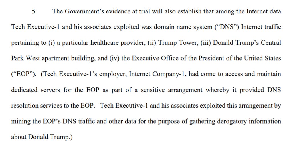 Try to imagine the look on Durham & his investigator’s faces as they realized some of the new data included in the February version of the Alfa Bank hoax **included DNS sever lookup material from the Executive Office of the President**.