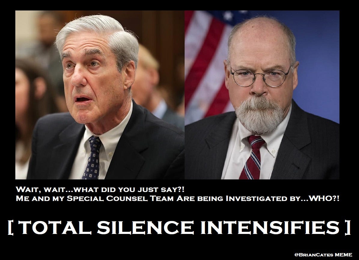 I’ll also point out his scope includes hunting down leakers of classified information used to drive the fake Trump/Russia collusion narrative, as well as investigating how the Mueller Special Counsel ended up prosecuting people like General Flynn based on invented crimes.