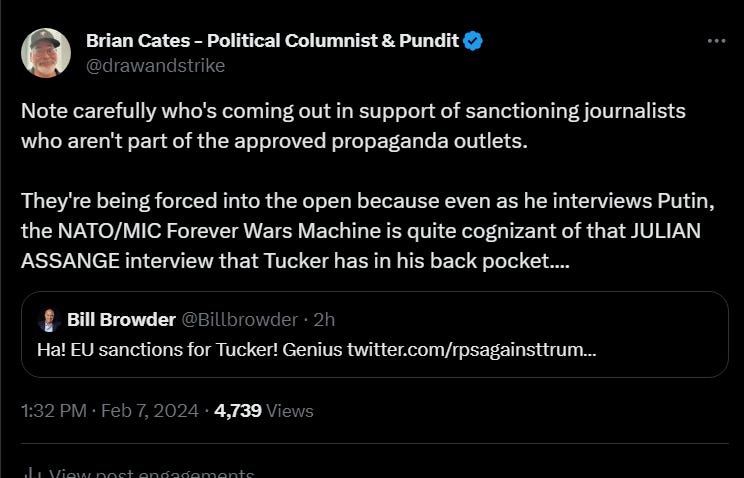 Remember, as we are waiting for the Tucker Carlson interview with Putin 2.0 to drop, Carlson still has that interview he did months ago with Julian Assange inside Belmarsh Prison in his back pocket.