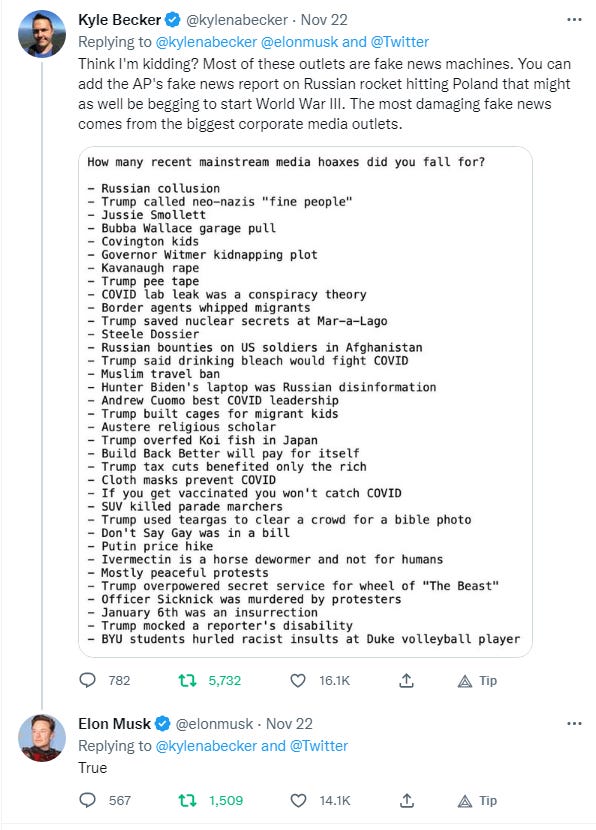 This trend of Musk interacting positively with the ‘wrong side’ of Twitter has the mainstream media blue check ‘fact checkers’ extremely upset. Under Twitter’s old ownership, Fake News outlets like Media Matters knew they had the full backing of the Twitter staff for their narrative control efforts. Now? Musk is directly telling them all those days are over.