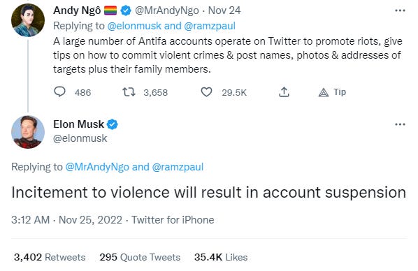 The new CEO then began banning all the Antifa accounts that had been using Twitter to promote and organize violence. Plenty of people had publicly complained about that too - and Twitter staff had done nothing.