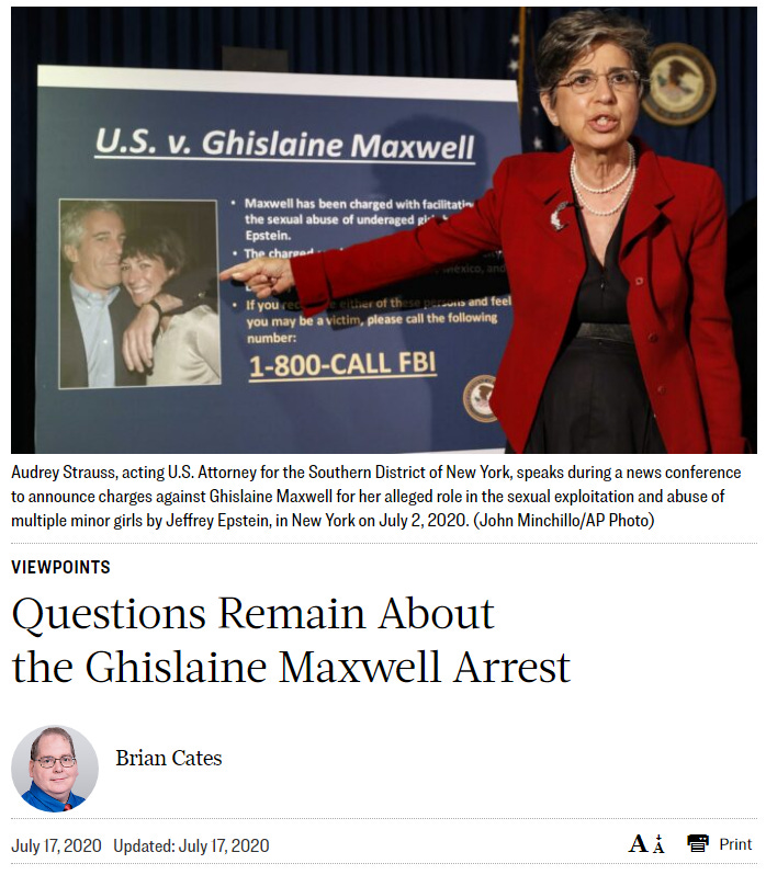 My take from the start, which you can read in the following columns written over the past three years, is that Epstein and Maxwell had to be dealt with first as unfinished business before any new business was pursued against the public officials who let this nefarious and notorious child-sex-trafficking ring go back in 2009.