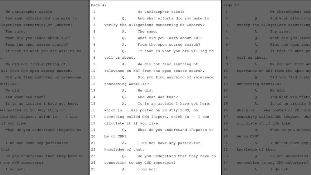 Instead, Steele told the court he had found the story on the now defunct CNN website “iReports”, and had placed the claim about Gubarev in the dossier himself. Steele also went on to make himself look like a clown by confessing he had no idea that iReports was a website used by anonymous bloggers; he gave the impression he thought the posts were by CNN journalists.