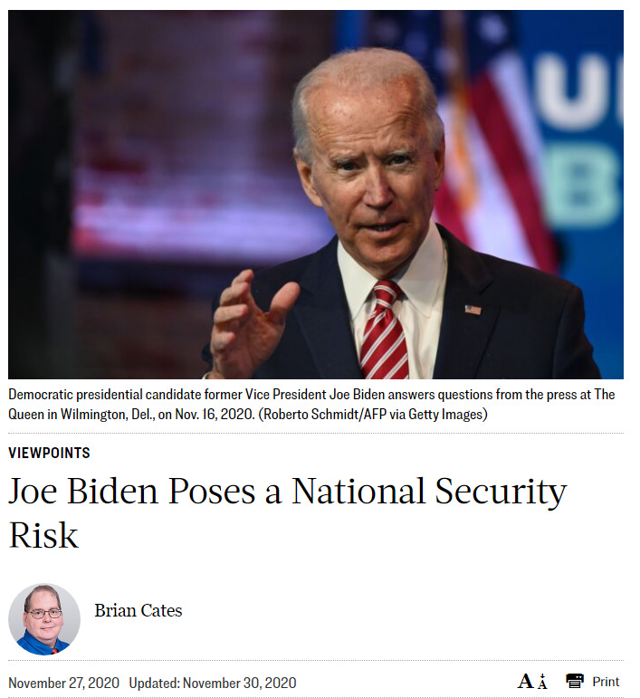 “Joe Biden Poses A National Security Risk” - November 7, 2020.