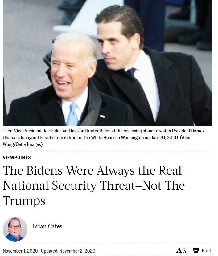 “The Bidens Were Always the Real National Security Threat - Not The Trumps” - November 1, 2020.
