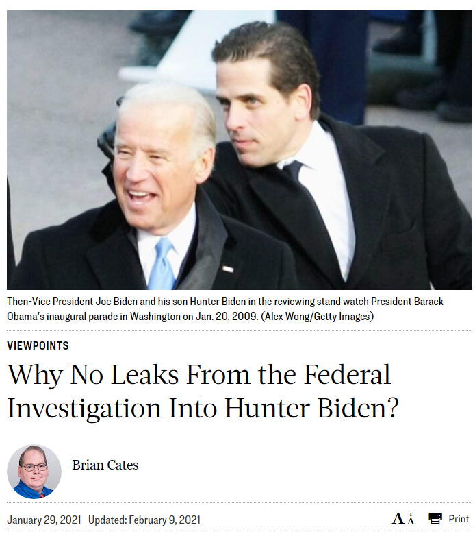 “Why No Leaks From the Federal Investigation Into Hunter Biden?” - January 29, 2021.