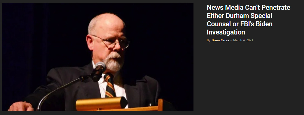 “News Media Can’t Penetrate Either Durham Special Counsel Or FBI’s Biden Investigation” - March 4, 2021.
