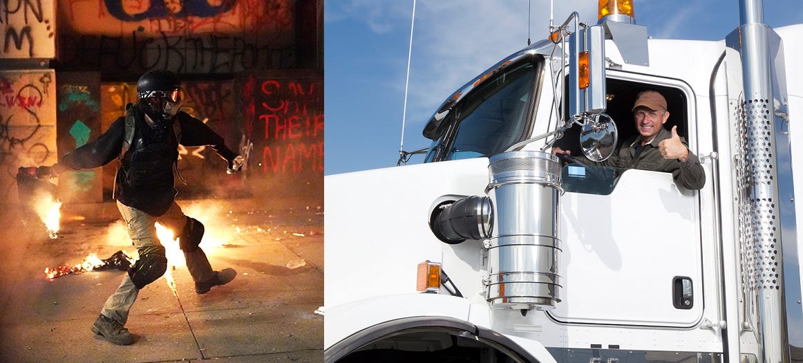 After endlessly claiming to understand the ‘anger’ and the ‘desire for vast societal change’ supposedly driving all the Antifa/BLM thuggery, looting, arson and general all around mayhem, after openly sympathizing with the violent rioters and looters and desecrators who rampaged through the world’s cities two years past, these same elites are now loudly claiming they also know what is driving all of these ‘racist’ and ‘hate-filled’ truckers to protest their draconian pandemic policies.