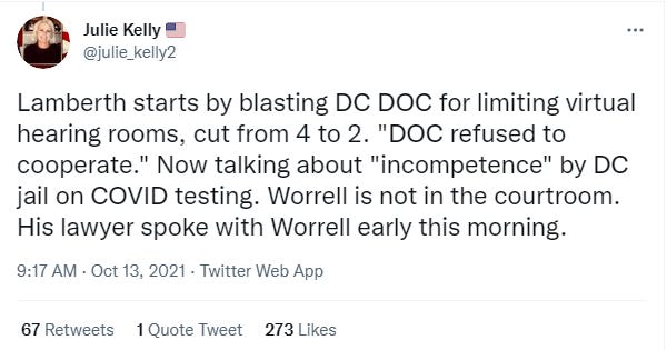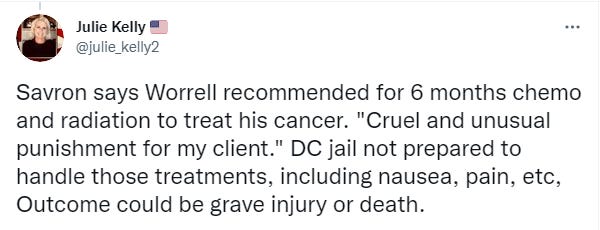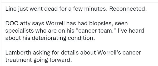 Being allowed to ‘see’ specialists on his cancer team inside the DC jail isn’t the same as those specialists giving Worrell the medical treatment he needs. This is another attempted dodge by the DOC attorney.