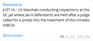 News just broke within the hour that the U.S. Marshals are now inside the D.C. jail conducting inspections of the facility. NBC 4, local NBC affiliate in Washington, just made this report.