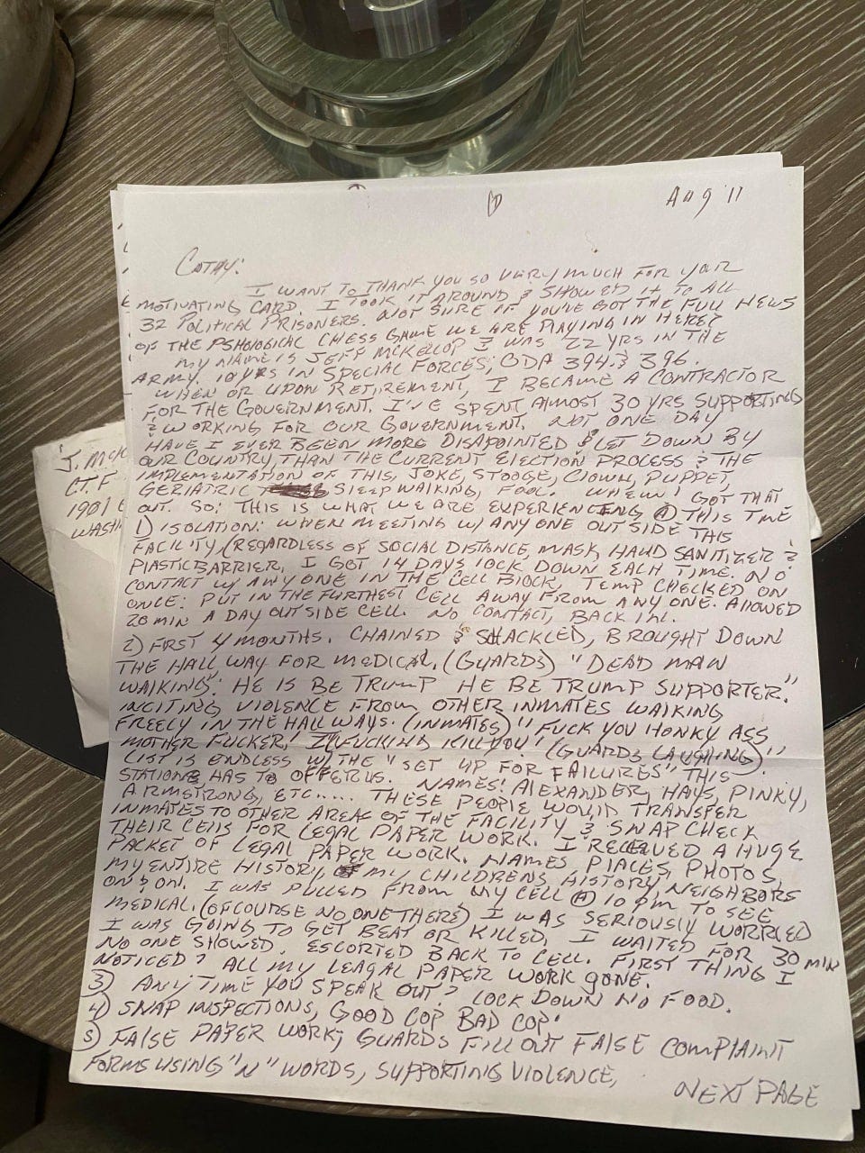 Letters written by J6 prisoners at the D.C. jail paint a very different picture from the one the DOC attorney is giving to Judge Lamberth.