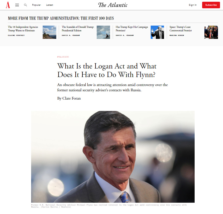 The purpose of the disinformation leaking campaign targeting General Flynn back in January of 2017 was fairly obvious: it was to hang a target on his back so the FBI could respond to the leaking by moving to investigate him for supposedly violating the Logan Act. That disinformation operation resulted in Flynn being fired by President Trump and then subsequently charged with lying to federal agents about his phone calls with Kislyak.
