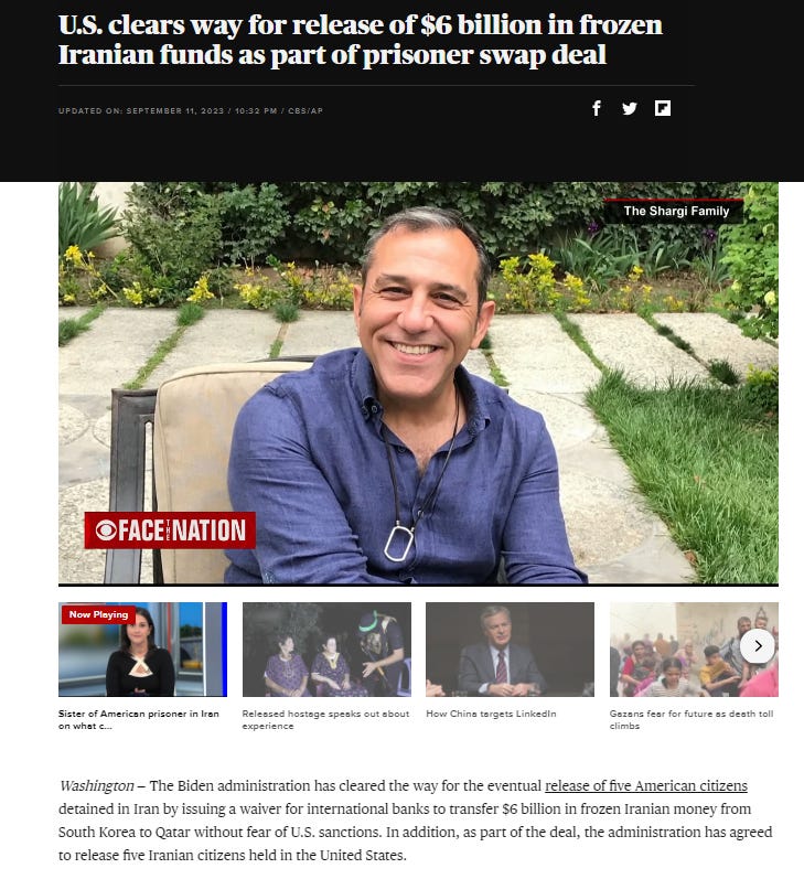 Biden also sent a a very strong message to Iran…by snidely informing the American public on the anniversary of 9/11 that he was unlocking $6 billion in frozen Iranian assets held in South Korea as part of a ransom payment for hostages. That was a strong message, all right. I think it was a very strong message to outlaw regimes like Iran that they should really start thinking about grabbing more Americans and holding them hostage, but that’s probably just me.