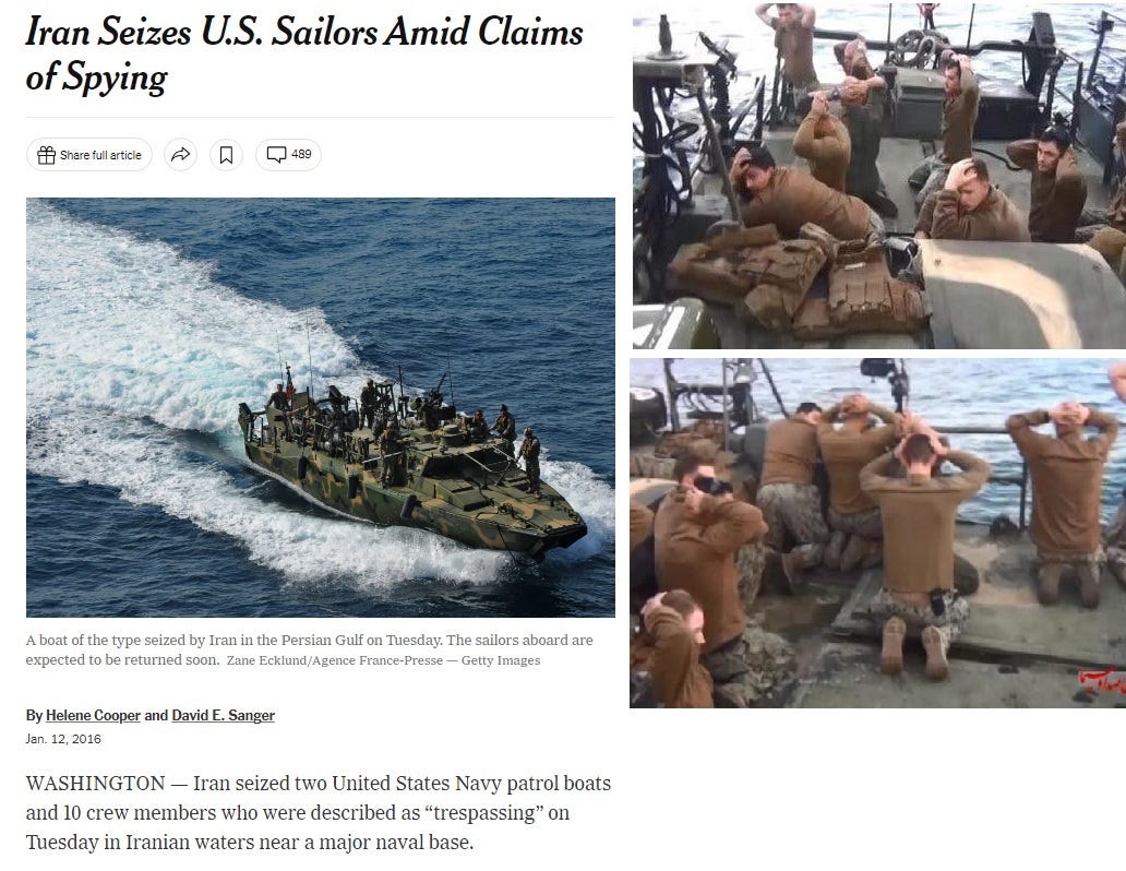 Obama and the foreign policy establishment hellbent on getting the Iran Deal done patiently waited until the Mullah’s had successfully put down the Green Movement to begin negotiating again. Time and again when Obama’s rotten administration had a chance to send a strong message to Iran’s leaders, they dissembled and bumbled and fumbled around in epic displays of weakness and subservience in an attempt to not offend the Mullahs, even when US Navy sailors were seized and held hostage.