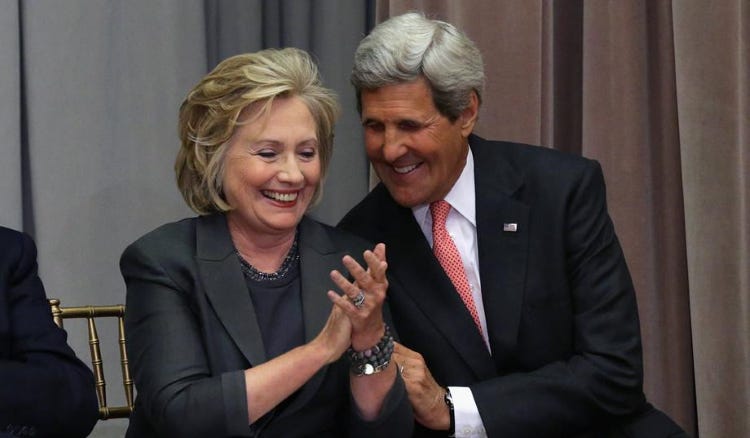 Yes, she was going to run for President in 2016, so she had to bail early to prepare for Her Long Awaited Coronation, and this is endlessly repeated so attention cannot be focused on the fact that her tenure as Secretary of State involved one massive blunder after another. After the events in Egypt & Libya, Obama and Hillary found themselves bogged down in Syria. It was as Syria was blowing up over Obama’s stupid ‘red line’ gaffe that Clinton bolted for the door and was quickly replaced by John Kerry.