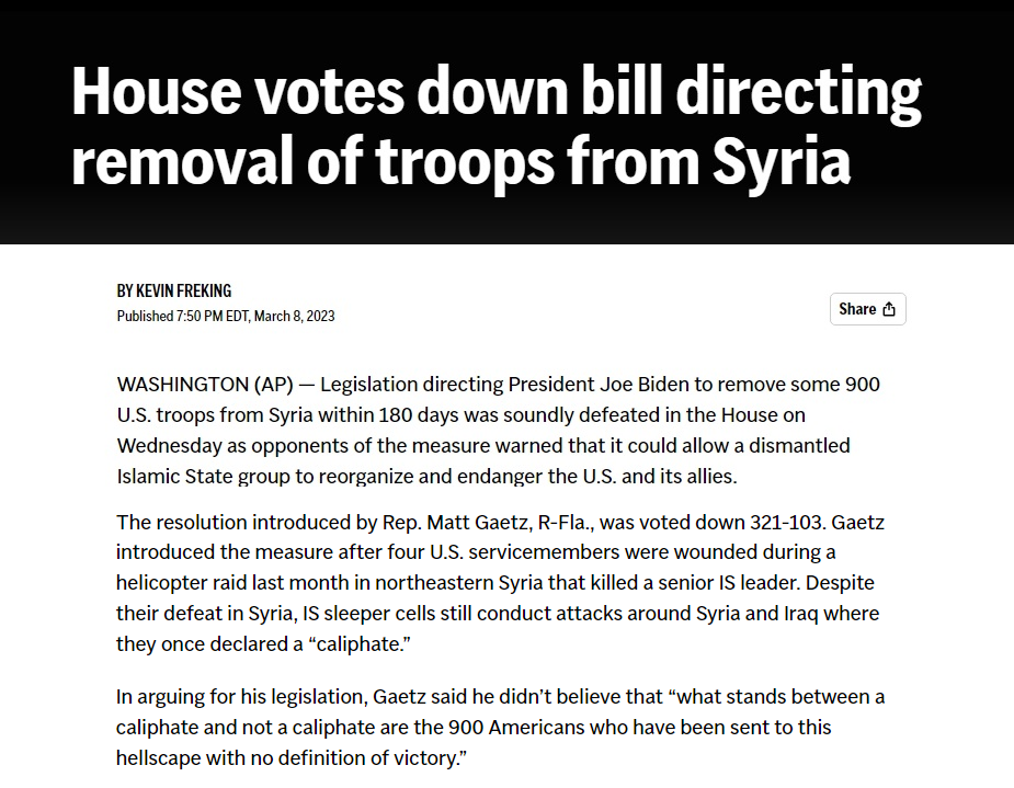 To this day its not all that clear what US interests American forces were representing as they were on the ground there from September 2014 all the way through 2019.