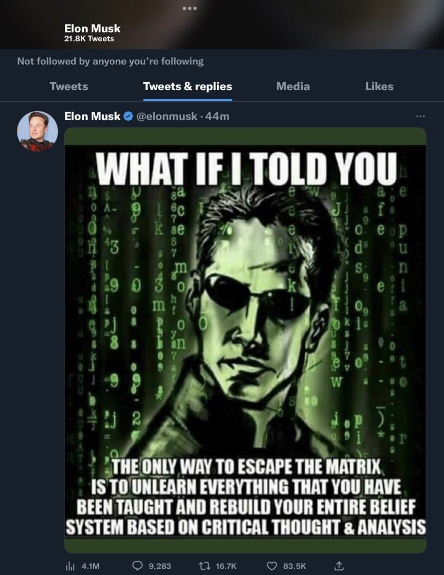 When people tell me they have NO IDEA how people wake up and leave the Matrix, I don’t think they thought that through.